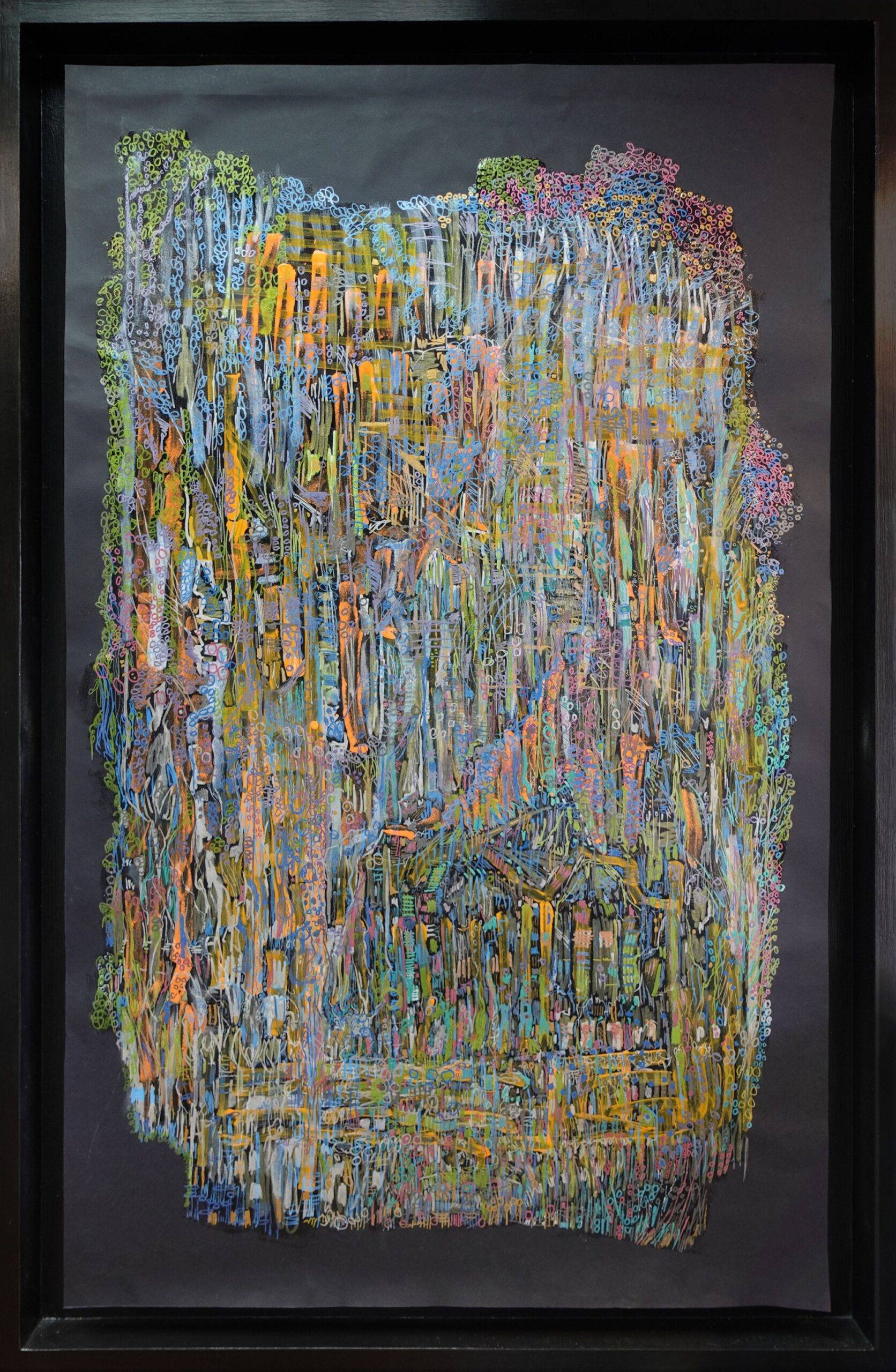 Mixed media on paper. Framed and unglazed