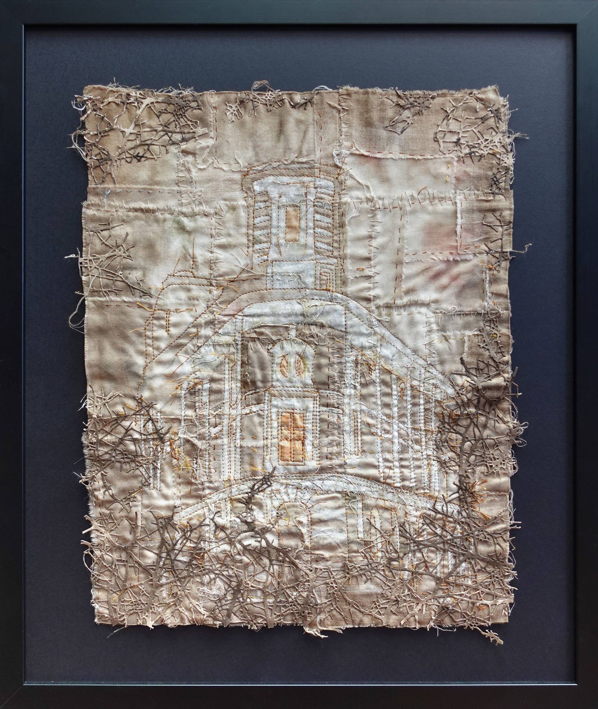 Hand stitching. Framed