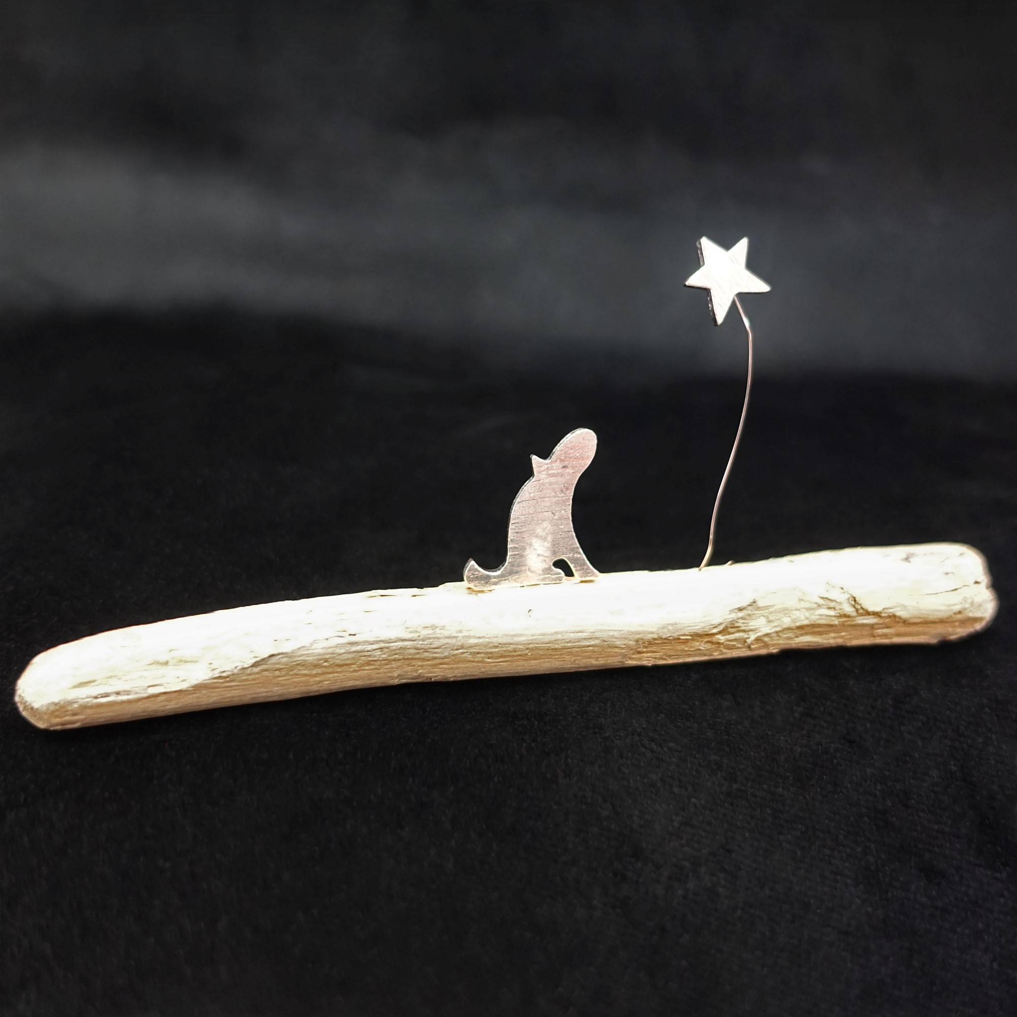 Pewter on driftwood