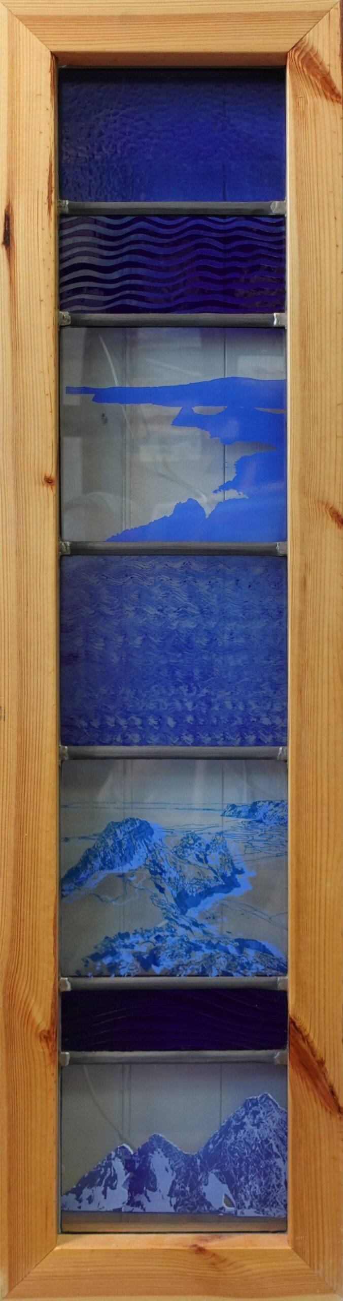 These lead panels are based on the idea surrounding Eco Therapy which helped the artist cope with covid lockdowns. Her reading of Deborah Cracknell’s ‘By the Sea’ confirmed her belief that the sea has a unique, positive effect on a person’s wellbeing.