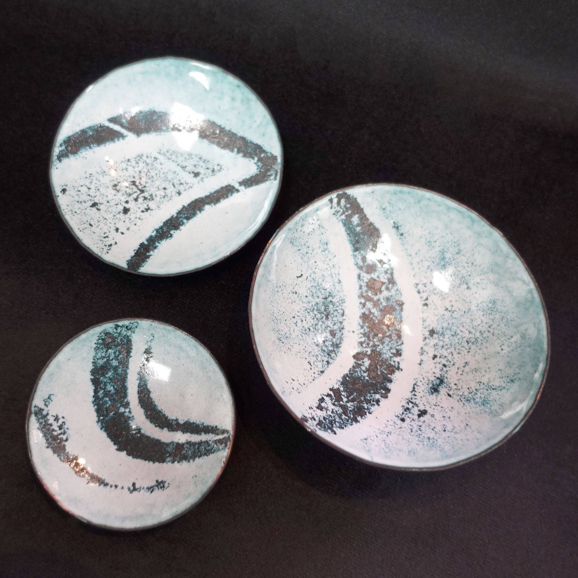 Set of three enamel bowls