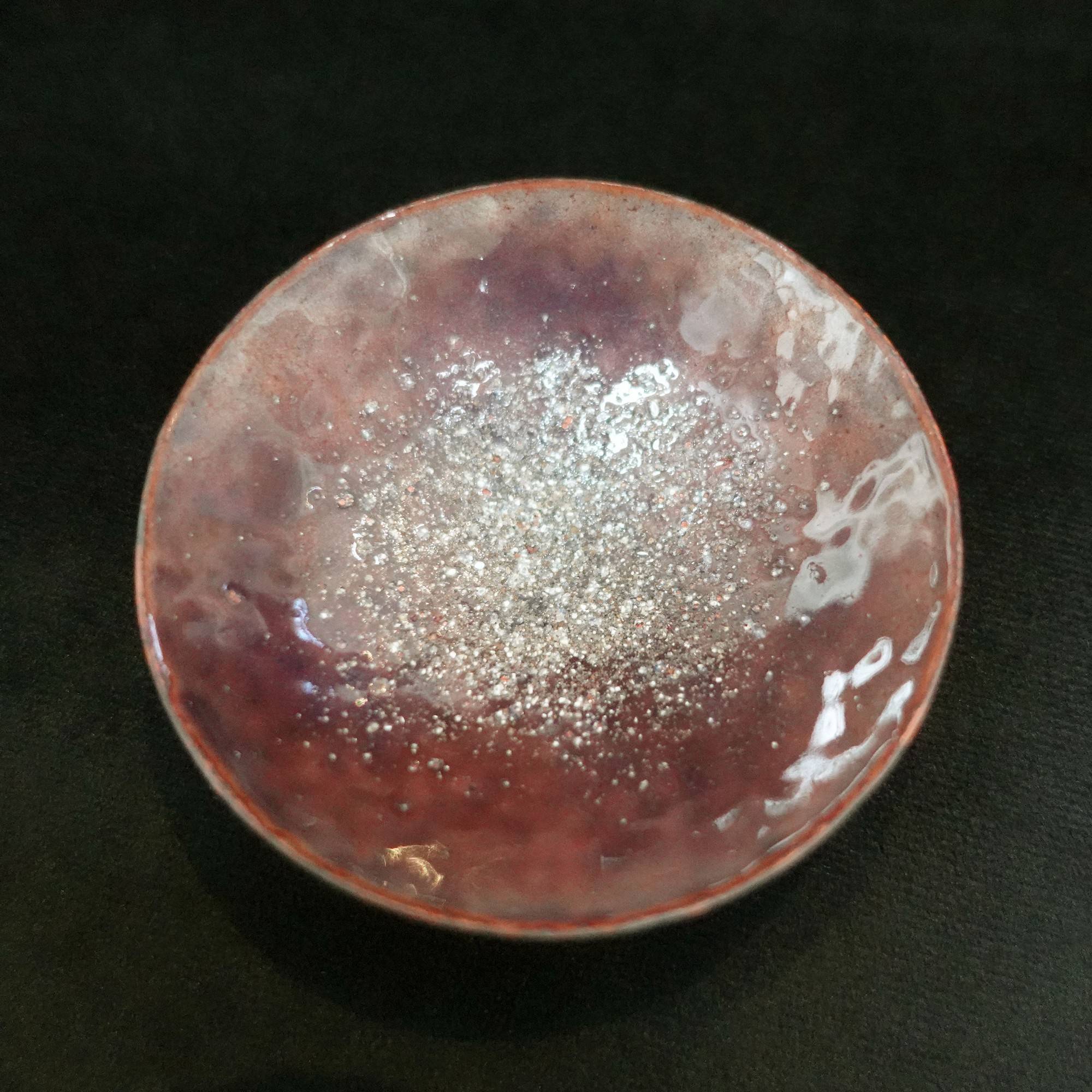 Copper, enamel, firescale and beach sand