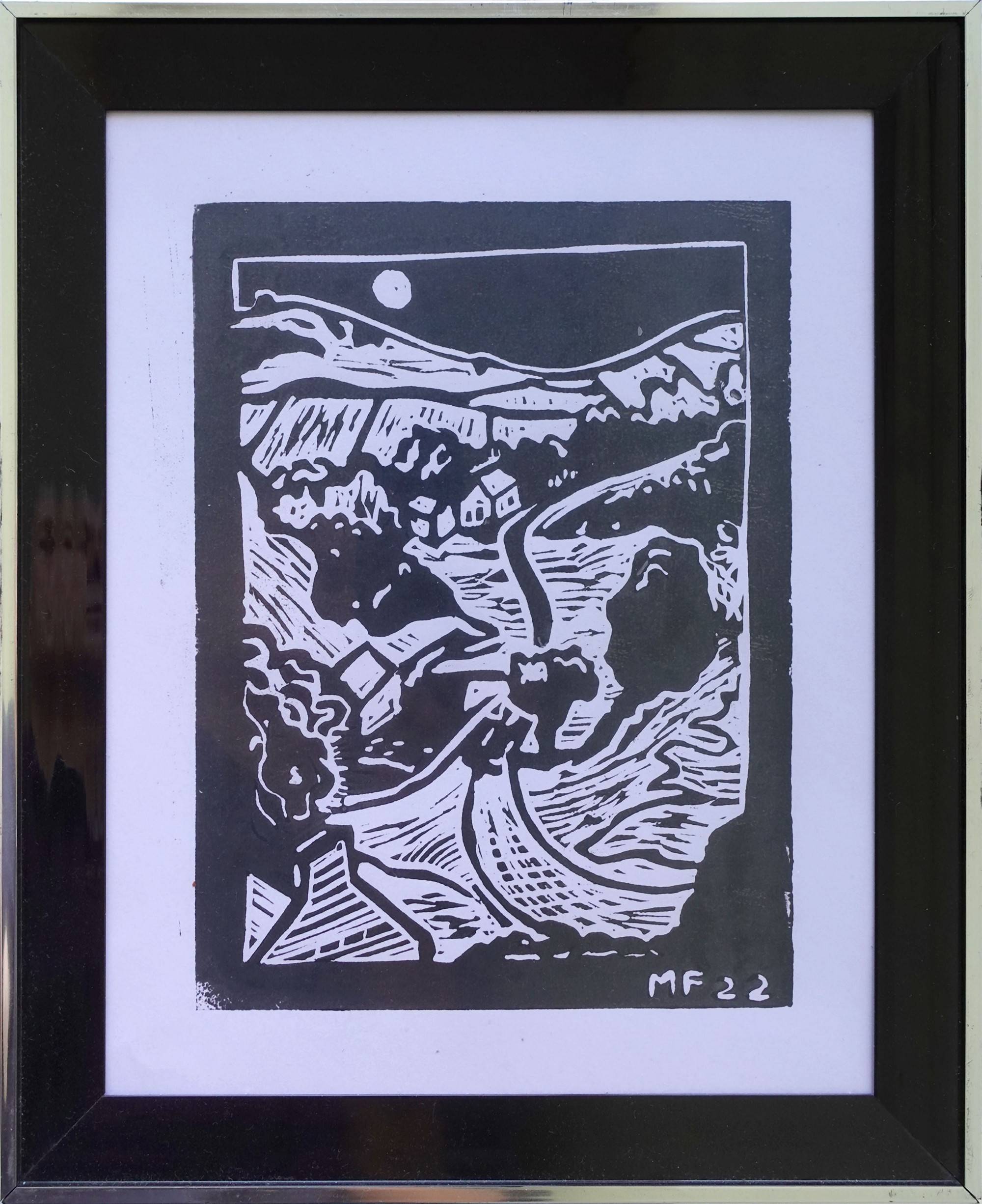 Lino print. Framed and unglazed